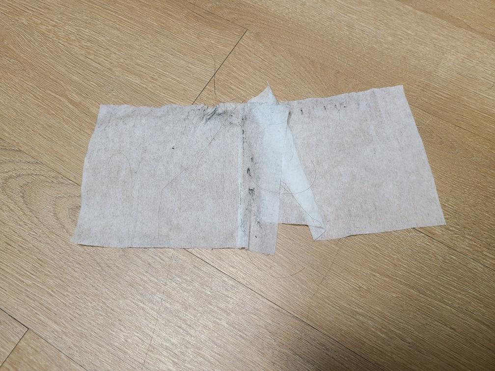 청소기를 돌리고나서 바닥을 물티슈로 닦아 보았습니다. 100% 먼지를 제거해주지는 못했지만 만족할 만큼 성능을 발휘한 것으로 보입니다. 청소기 안돌렸다면 저 물티슈에는 먼지가 가득했을 텐데 말이죠.