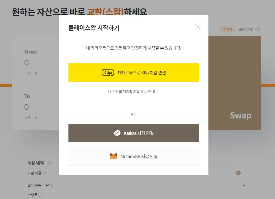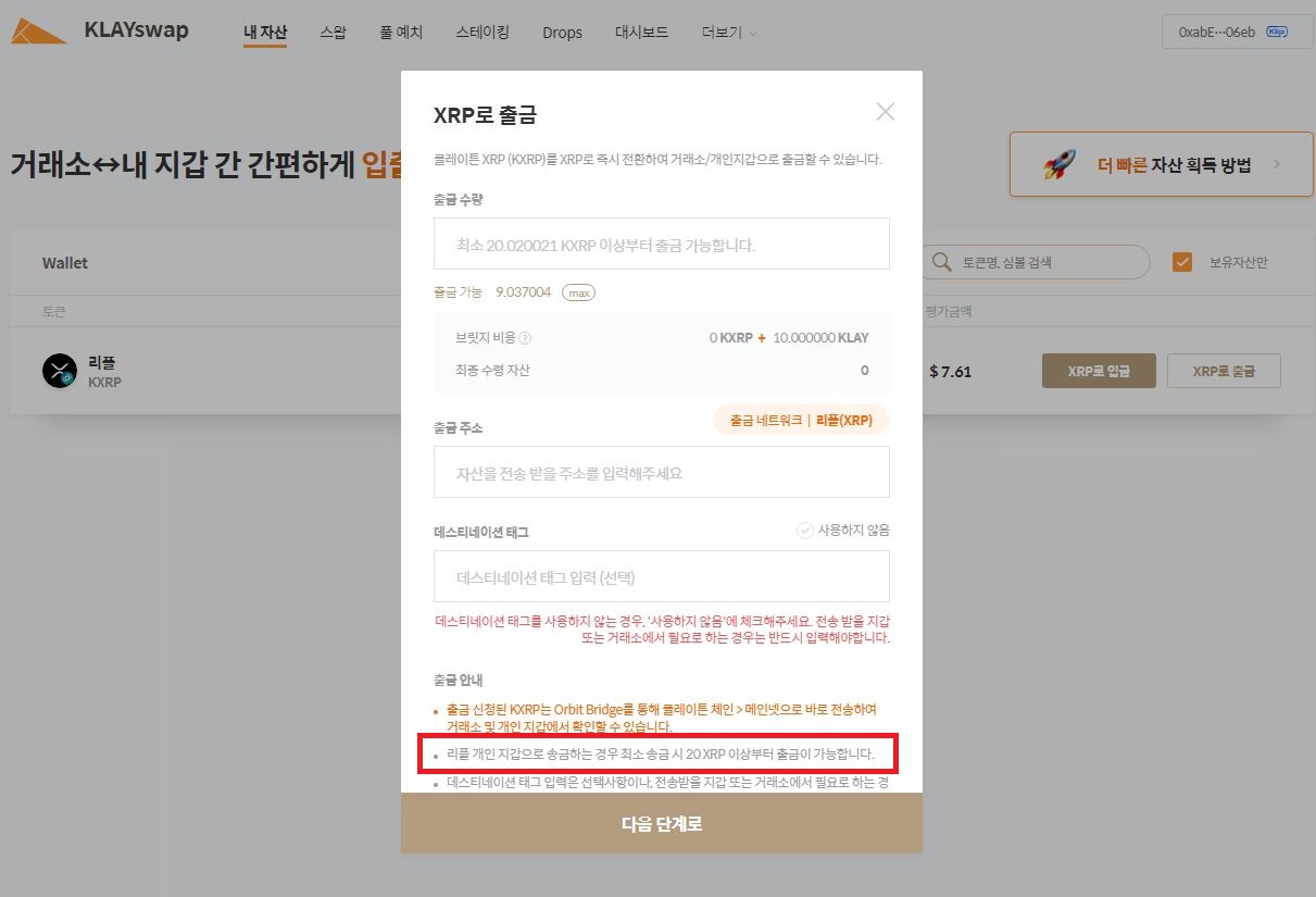 이렇게 스왑한 토큰을 거래소 업비트와 빗썸으로 옮겨줘야하는데요. KLAY로 스왑하면 빗썸으로 옮길수 있구요. 업비트로 옮기려면 업비트에 존재하는 코인으로 바꿔주는게 중요하겠죠?