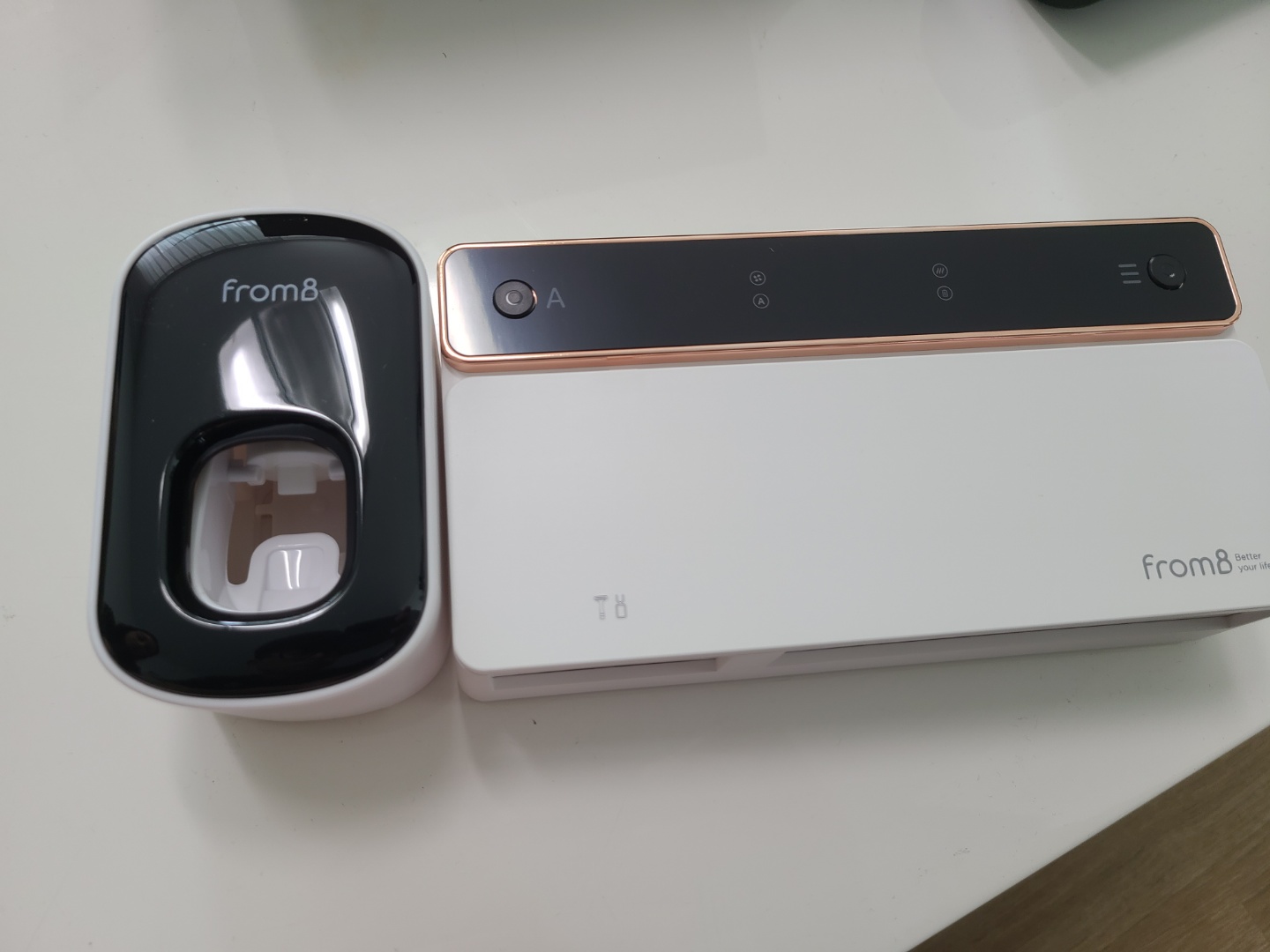 프롬비 칫솔살균기는 여러 쇼핑몰을 검색하여 후기등을 참고하였구요. 깔끔한 디자인, 합리적 가격, 적당한 기능이 매력적이여서 구매했습니다. 여기에 덤으로 치약디스펜서까지 추가해버렸네요.